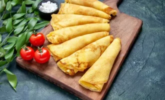 - Verhit een koekenpan goed, giet het pannenkoekenbeslag erin (de pan niet oliën), verdeel het over het hele oppervlak en bak het aan beide kanten goudbruin.